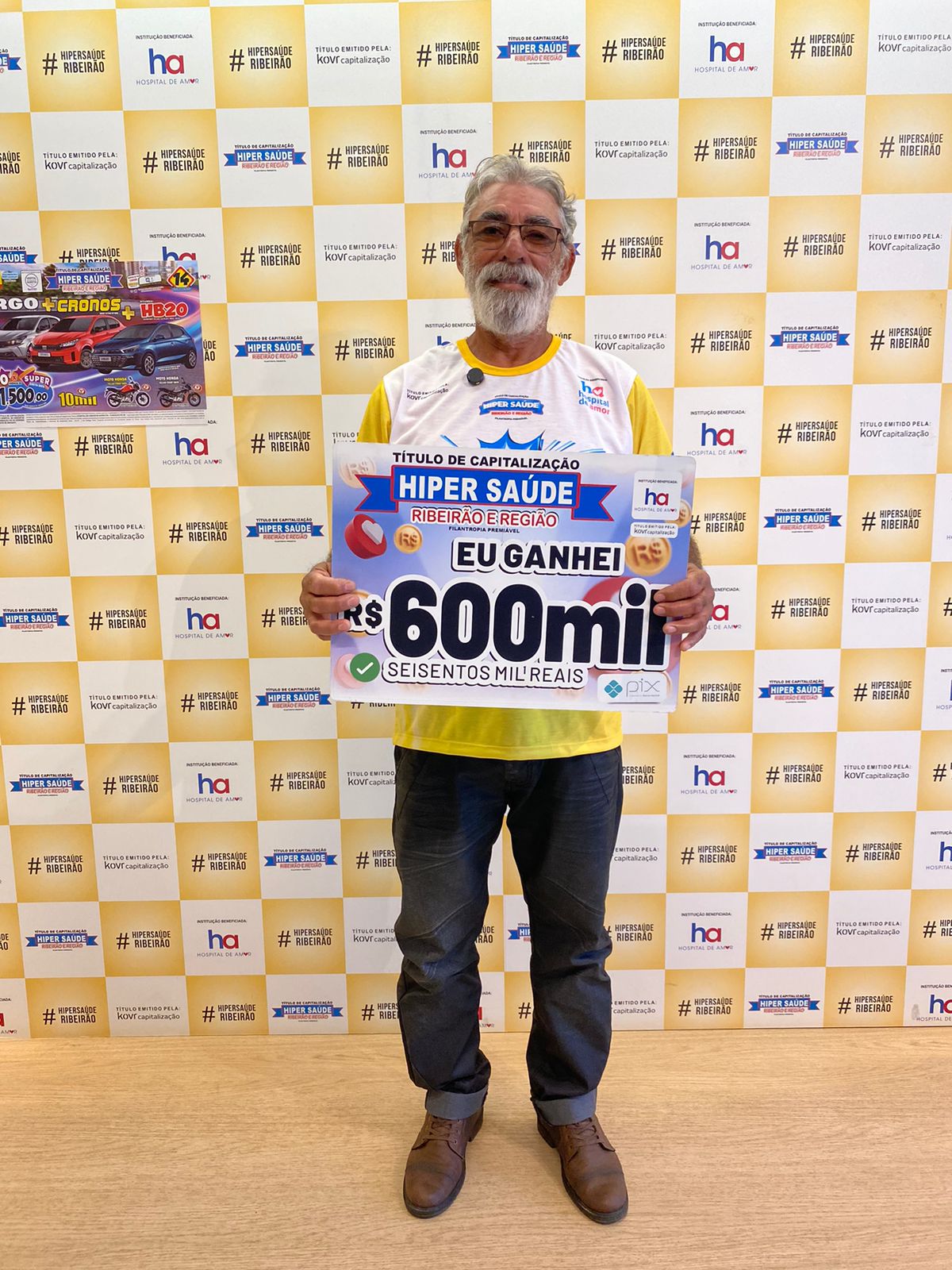 O domingo, 7 de setembro, trouxe a sorte para o senhor Eliseu, de 63 anos, morador de São Carlos. Ele foi o grande contemplado no quarto sorteio do Hiper Saúde, levando para casa o prêmio de 600 mil reais. O motorista particular revelou que tem o hábito de acompanhar os sorteios todos os domingos. Ele acorda cedo, toma um cafezinho, senta-se no sofá com a caneta e o título na mão, e gosta de marcar cada número com atenção.